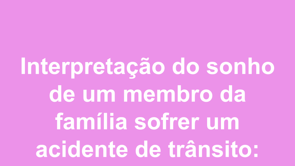 Sonhos onde a família sofre um acidente de trânsito podem simbolizar uma série de inseguranças e medos. Muitas vezes, esses sonhos refletem preocupações sobre a segurança dos entes queridos ou a sensação de perda de controle em situações da vida real. Quando sonhamos com um acidente, pode ser um sinal de que estamos enfrentando conflitos internos ou externos que nos deixam ansiosos. A interpretação varia de acordo com o contexto do sonho e as emoções sentidas durante ele.