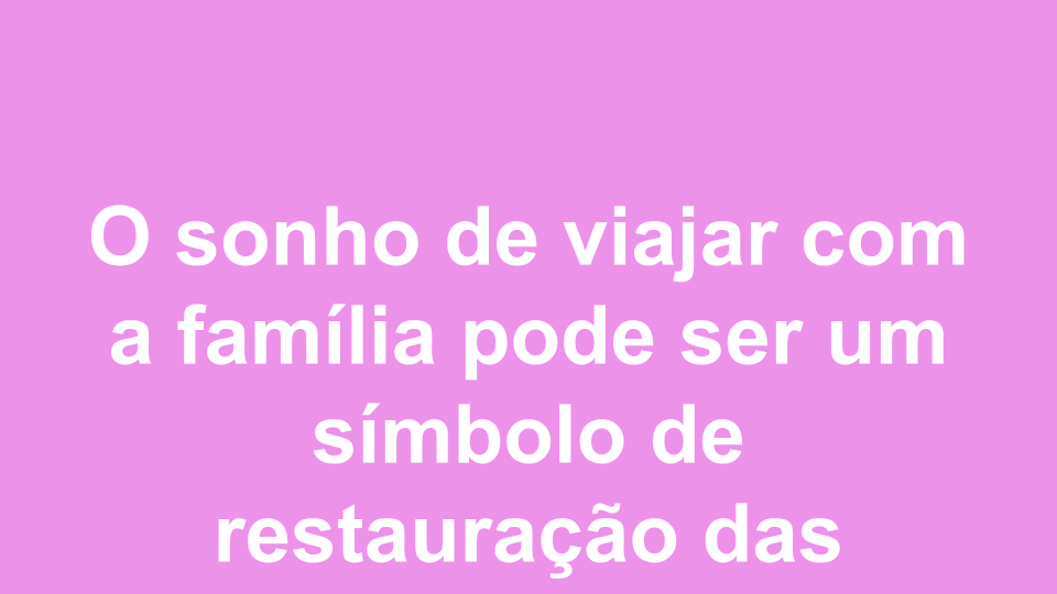 Tags: sonhos, viagem, família, reconciliação, estabilidade, interpretação de sonhos, harmonia familiar, autoconhecimento, relações, emoções