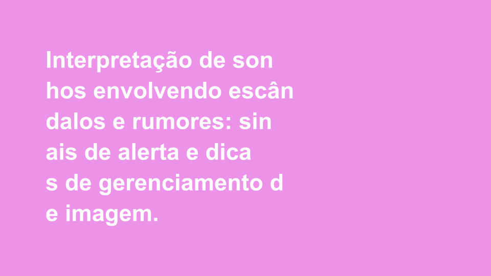 Tags: sonho, interpretação, escândalos, rumores, gerenciamento de imagem, saúde emocional, autoconhecimento, insegurança, comunicação, suporte.